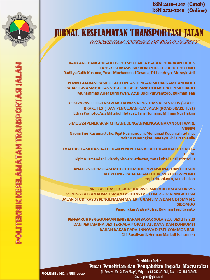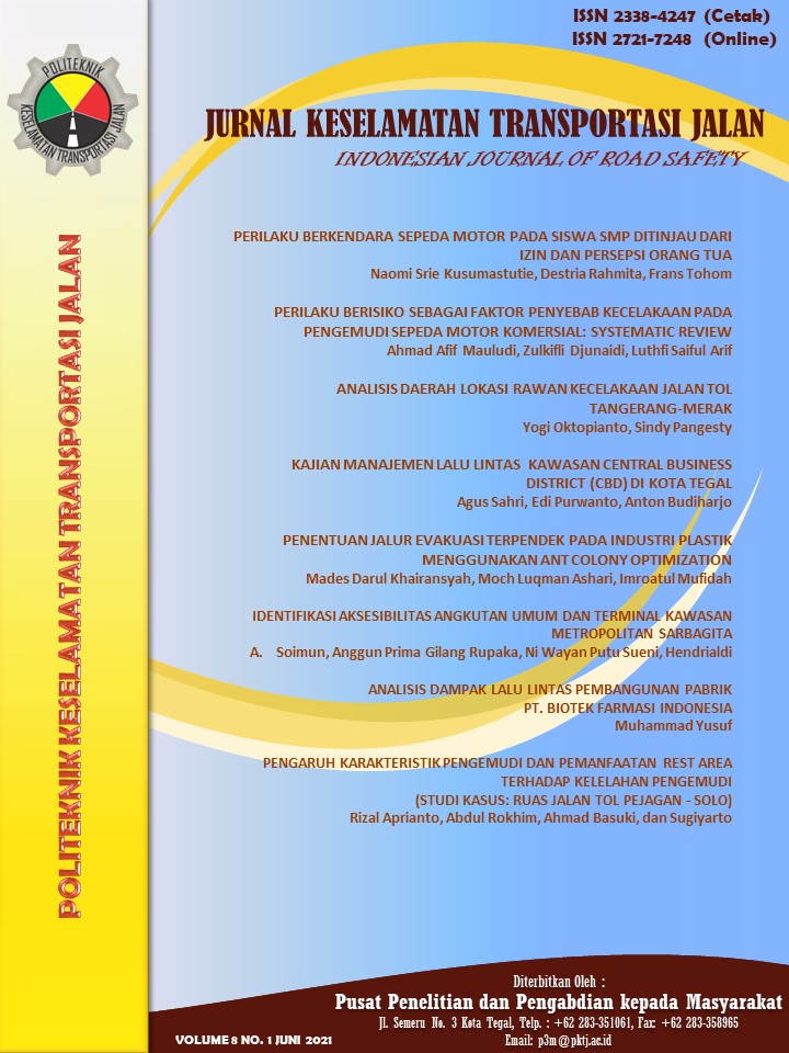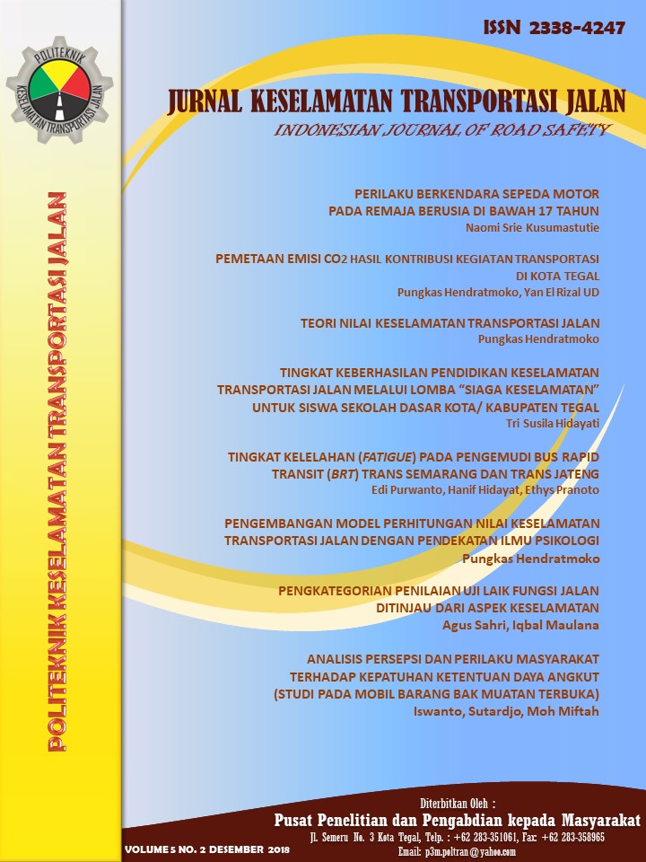 JURNAL KESELAMATAN TRANSPORTASI JALAN (INDONESIAN JOURNAL OF ROAD SAFETY)